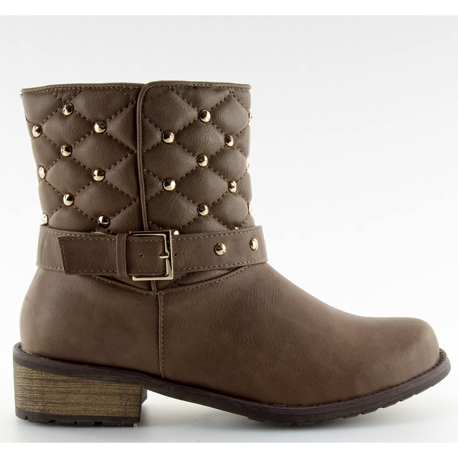 Quilted ankle boots 200-62 khaki - stylish and functional ankle boots for colder days. The quilted upper decorated with small studs adds character, and the insulation ensures thermal comfort during autumn and winter. A solid, thick sole with a protector guarantees grip and stability, while a zipper on the inside makes it easy to put on quickly.