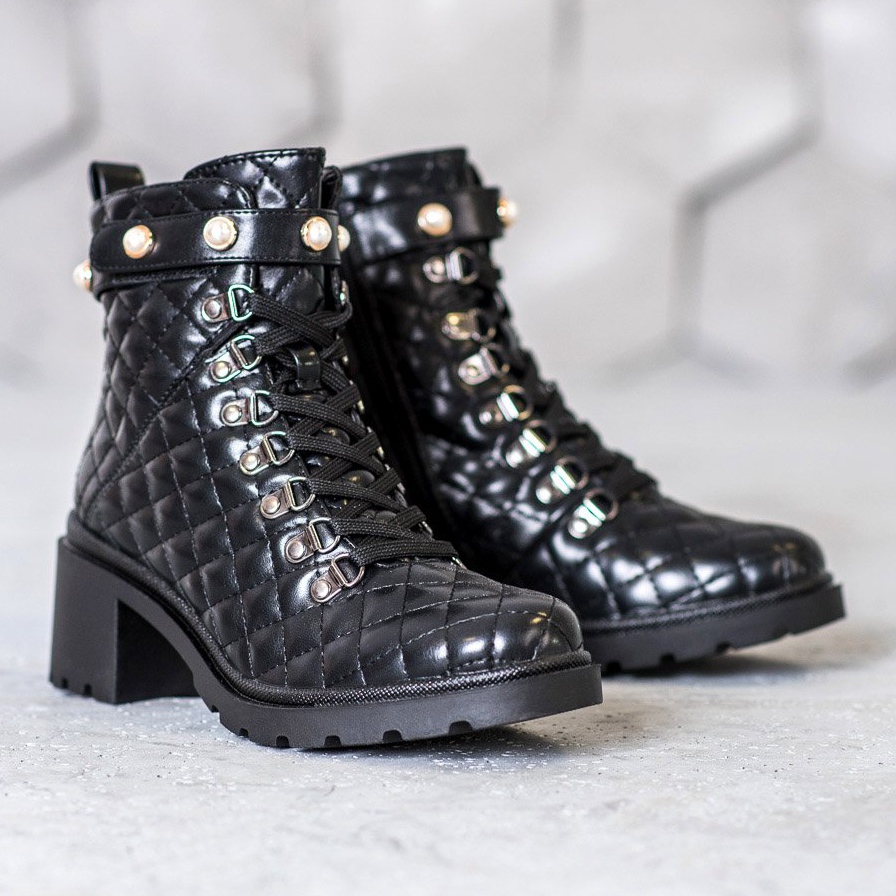 Made of high-quality eco-leather, with a quilted pattern, they look extremely attractive. Thanks to the lace-up fastening at the front and the practical zipper on the inside, putting them on and taking them off is a pure pleasure. The solid sole with a 2 cm platform and a 5.5 cm heel provide not only a fashionable look, but also comfort of wearing all day long.