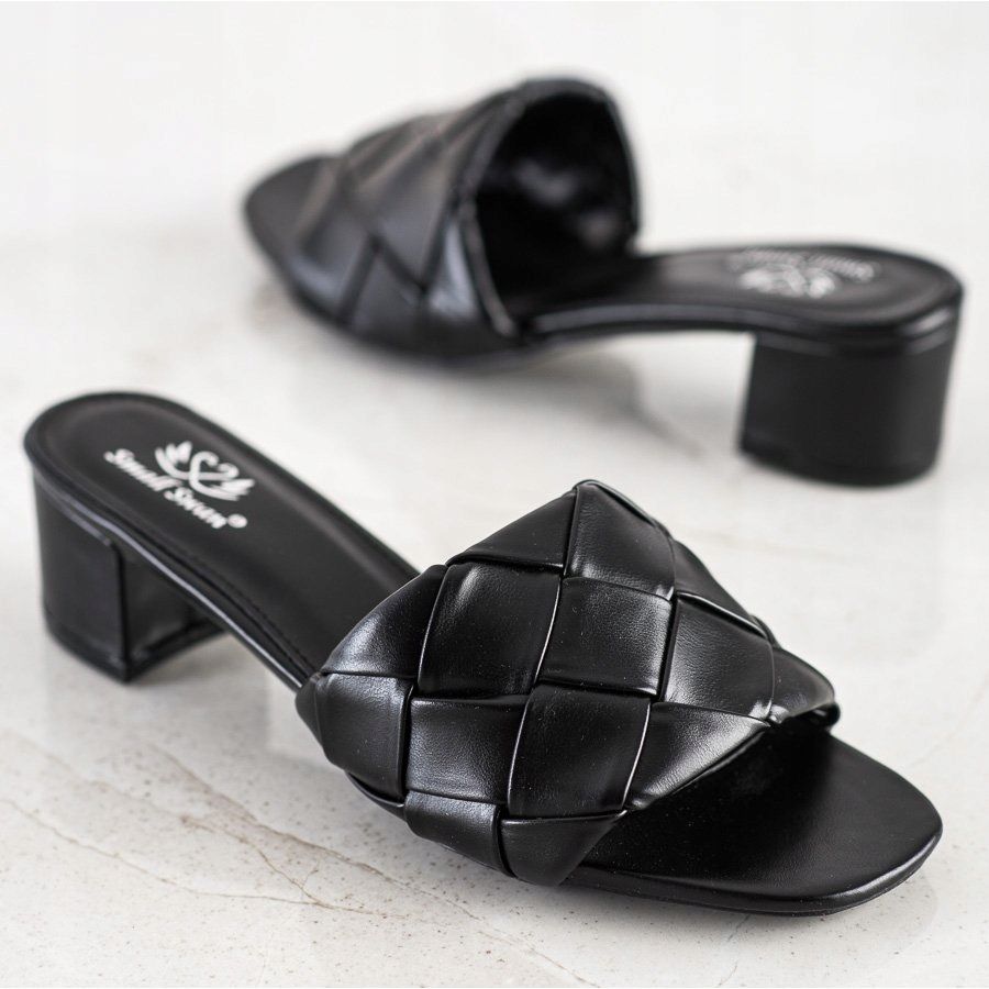 We offer elegant and comfortable flip-flops with a block heel from the renowned manufacturer Small Swan. This model in black fits perfectly into a woman's wardrobe, combining classic with casual style. Thanks to the quilted pattern, the flip-flops not only attract attention, but also provide a fashionable complement to everyday styling.