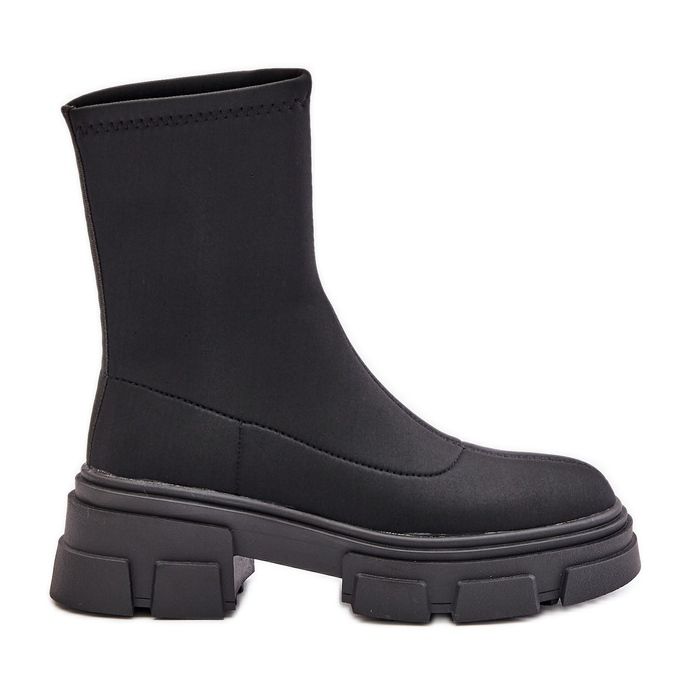 Perfect for casual stylizations, these black boots will match both jeans and dresses. Made of fabric, they are perfect for various weather conditions, and the small platform further increases the comfort of wearing them.