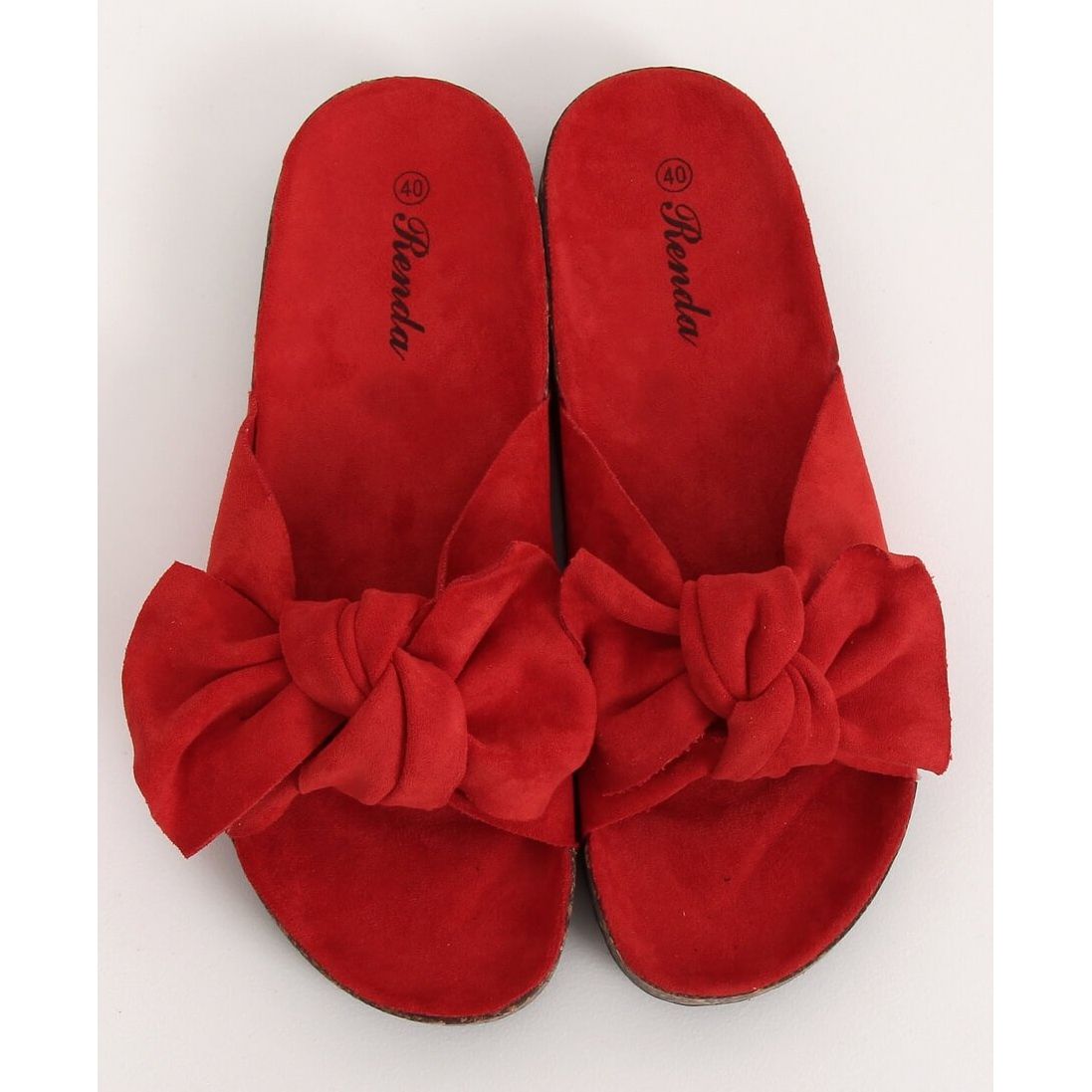 Here are the cork-soled flip-flops in an energetic red color, model 10-218 Red, perfect for summer days! These charming women's flip-flops stand out with their fashionable design and beautiful bow, which gives them a unique charm.