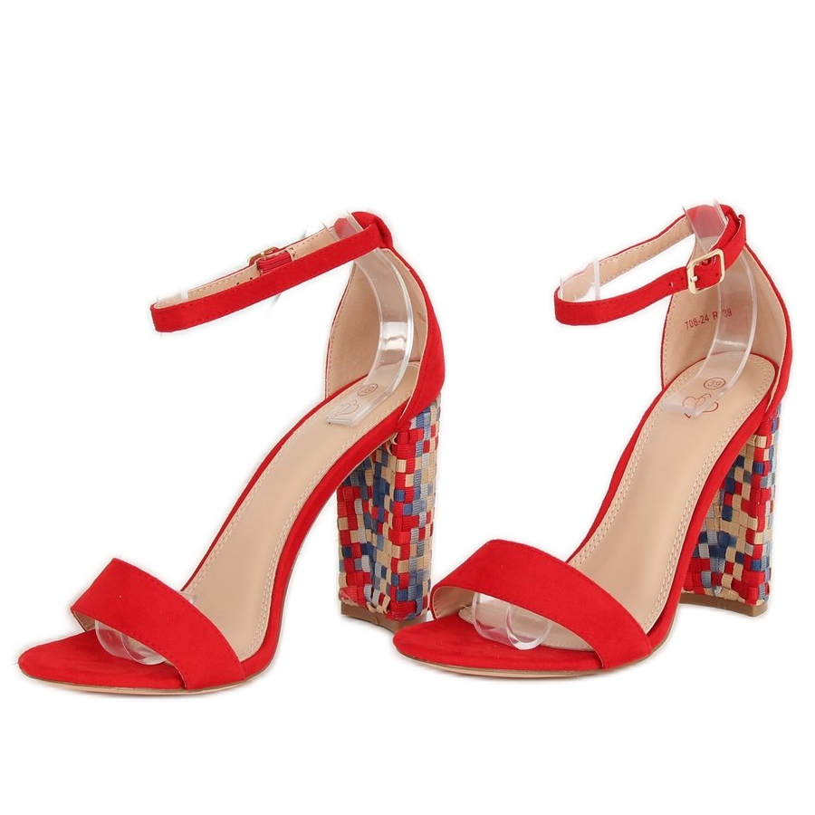 Inna marka Red high-heeled sandals 708-24 Red multicolored