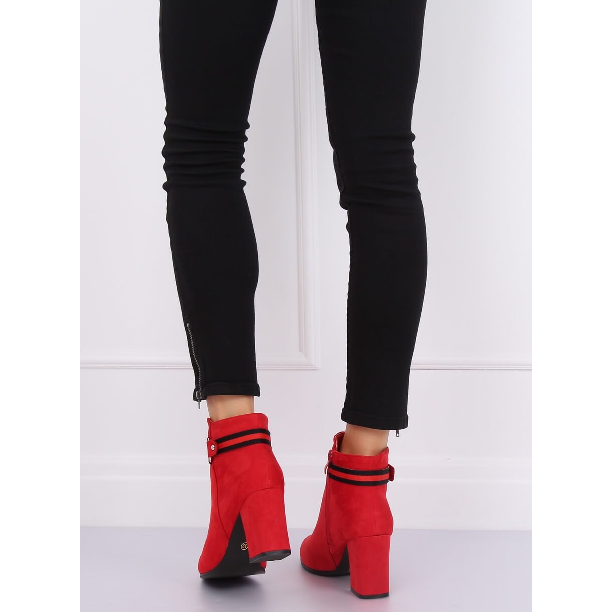 We present extraordinary suede women's ankle boots with heels NC923 in an intense red color. These elegant shoes are a perfect combination of style and comfort that will make every woman feel special.