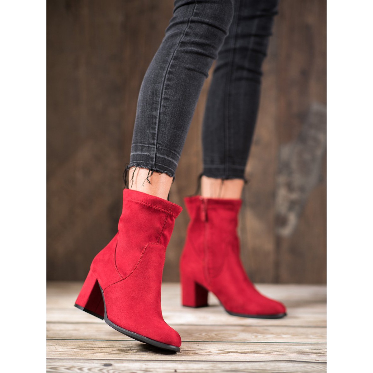 SHELOVET Red Slip-On Ankle Boots - Synonymous with Feminine Chic and Captivating Style