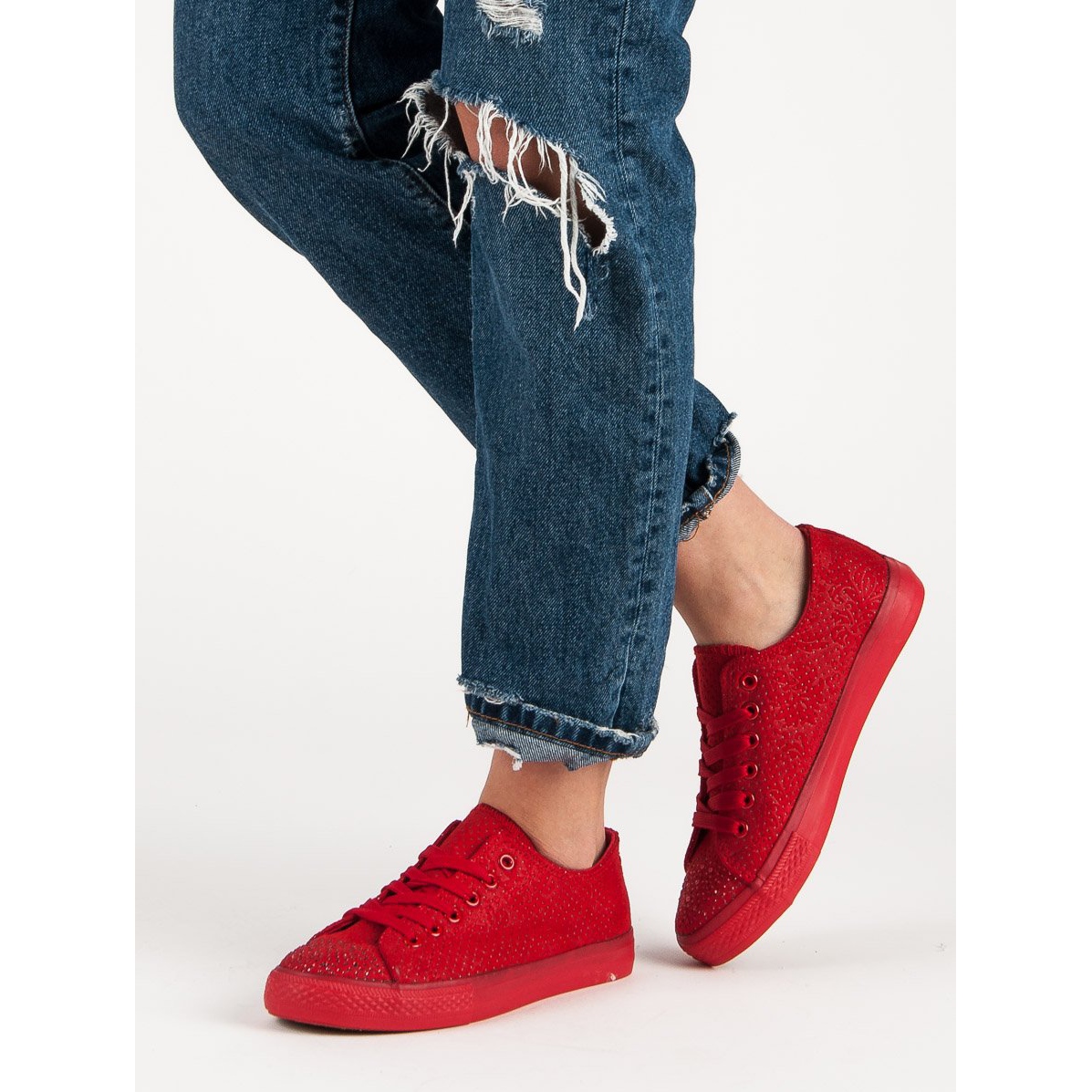 Sport Red Sneakers With Crystals are the perfect choice for women who want to add a bit of color and shine to their everyday styling. The intense red in which they were made perfectly livens up any casual outfit, and the addition of fashionable crystals on the toe makes these sneakers stand out from standard models.