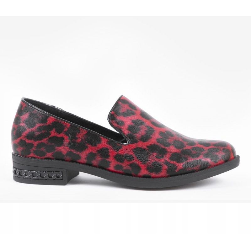 Red women's shoes C18-6527 are unique footwear that stands out not only with its fashionable color, but also with its interesting, animal pattern. These elegant shoes, combining intense red with classic black, are a great choice for brave women who value original style.