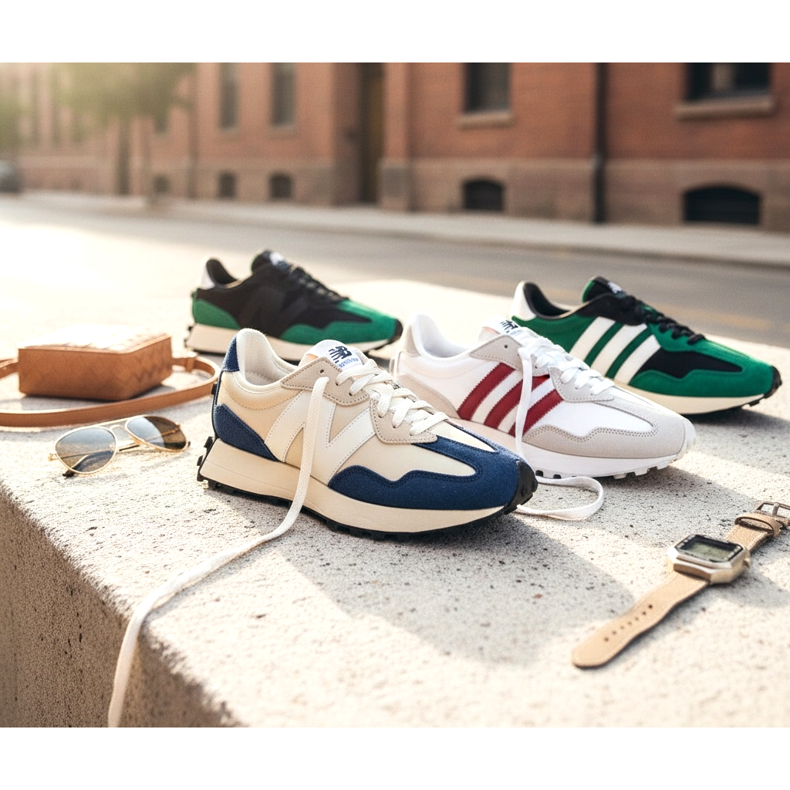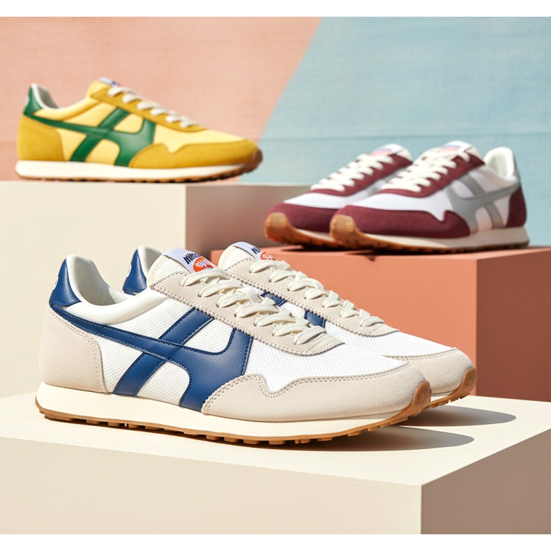 Retro running shoes are footwear inspired by the classic sports running shoes from the 1970s and 1980s. Their main characteristics are: a slim silhouette with a low, thin sole, clean lines without excessive decorations, nylon or dusty inserts in contrasting colors, as well as a clear sports heritage expressed in details such as stripes, logos or specific lace loops.