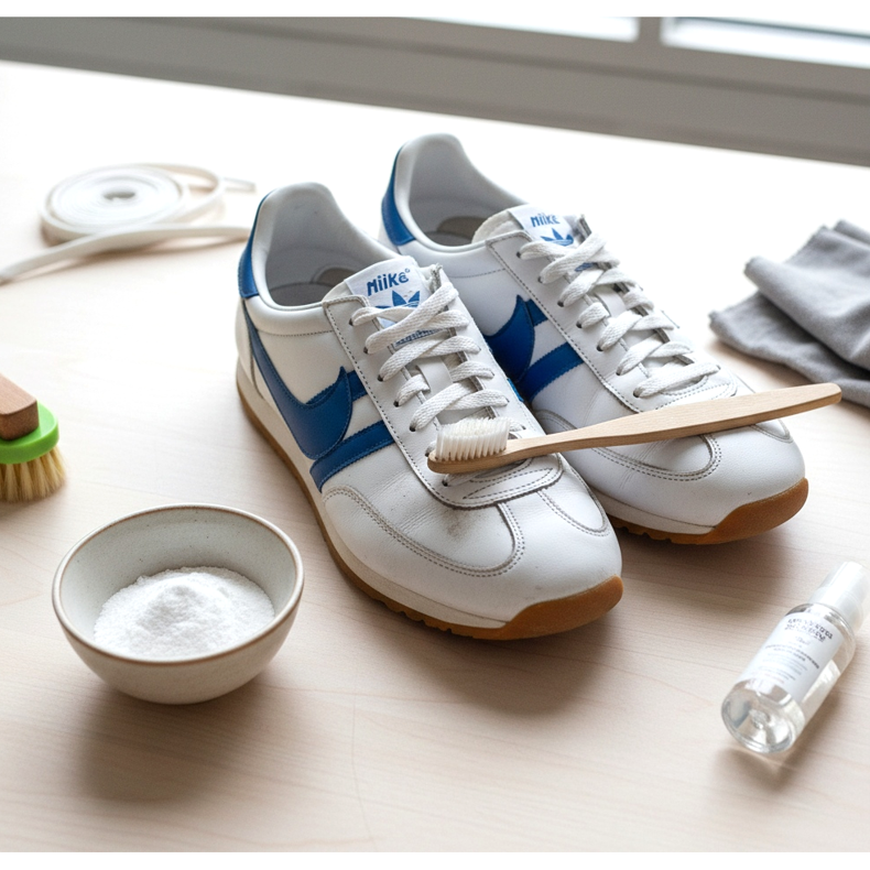 Retro sneakers, especially in white, require regular care. Fortunately, it's easier than it seems. A paste of baking soda and water is perfect for cleaning white leather - use an old toothbrush and gently rub the dirt. The effect is surprising.