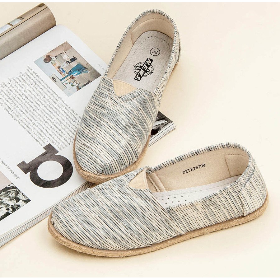 Striped espadrilles in grey are a must-have in every woman's wardrobe. These elegant shoes from Butymodne combine comfort and style, making them the perfect choice for long walks and everyday outings. Their subtle shade and delicate stripes add a girlish charm to them, making them a great match for both casual styles and more elegant creations, such as dresses.