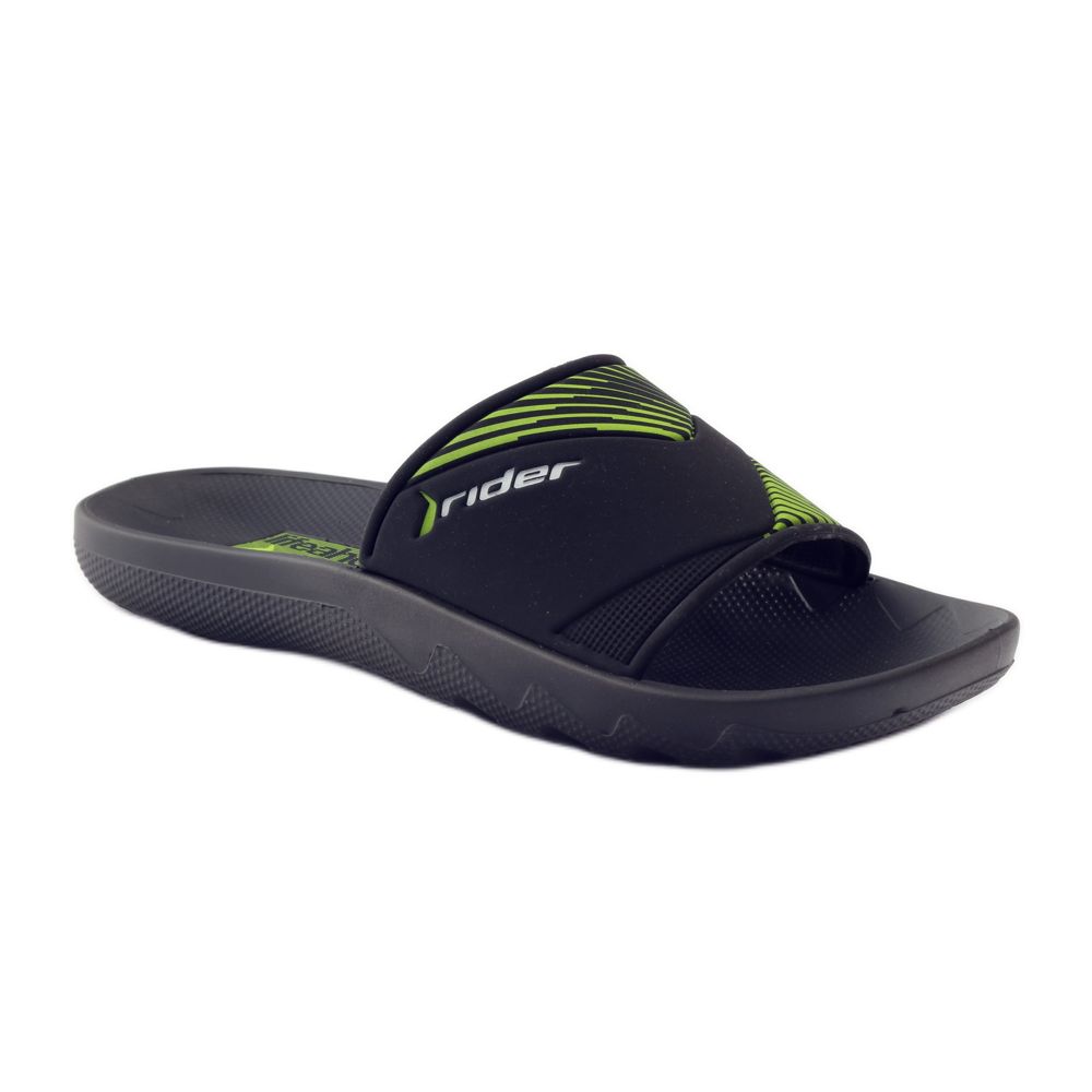 The Rider 82325 pool flip-flops are a great choice for men looking for comfortable footwear for summer days. They feature a modern design in black with attractive green stripes that add freshness and style.