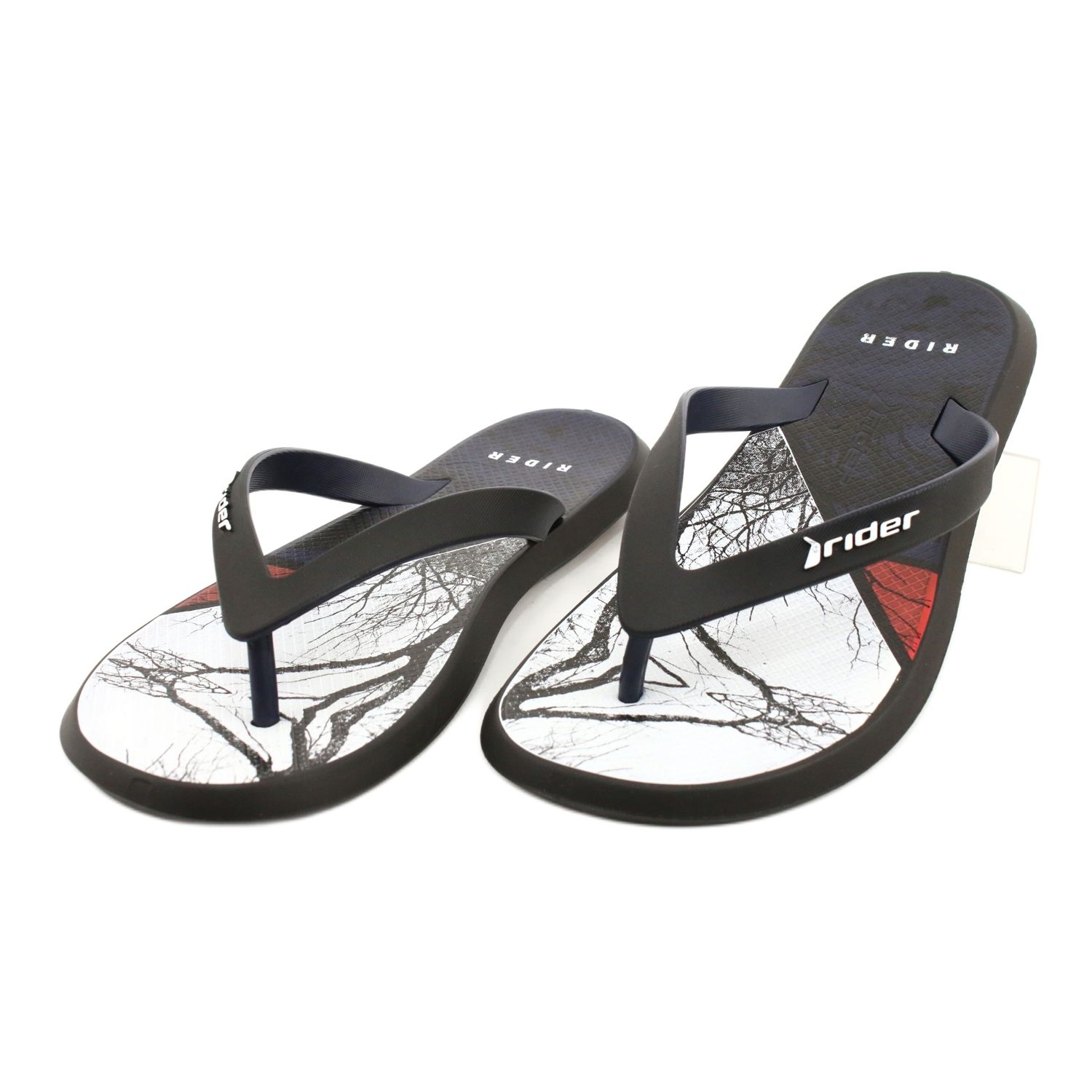 Made of high-quality foamed rubber, the Rider japoki provide not only comfort, but also an attractive design that catches the eye. The interesting pattern of the insole gives them a unique character. Additionally, their multi-colored sole attracts attention, and the black color makes them a great match for many styles.