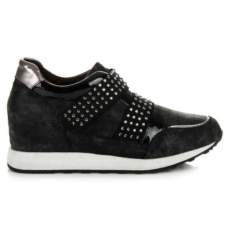 Discover stylish elegance and comfort with the rocker wedge sneakers from the Kylie brand. These black sneakers are the perfect everyday choice, combining sporty and fashionable style. With a 6.5 cm heel and a hidden wedge, they add lightness to every step, and the 2 cm platform ensures comfort all day long.