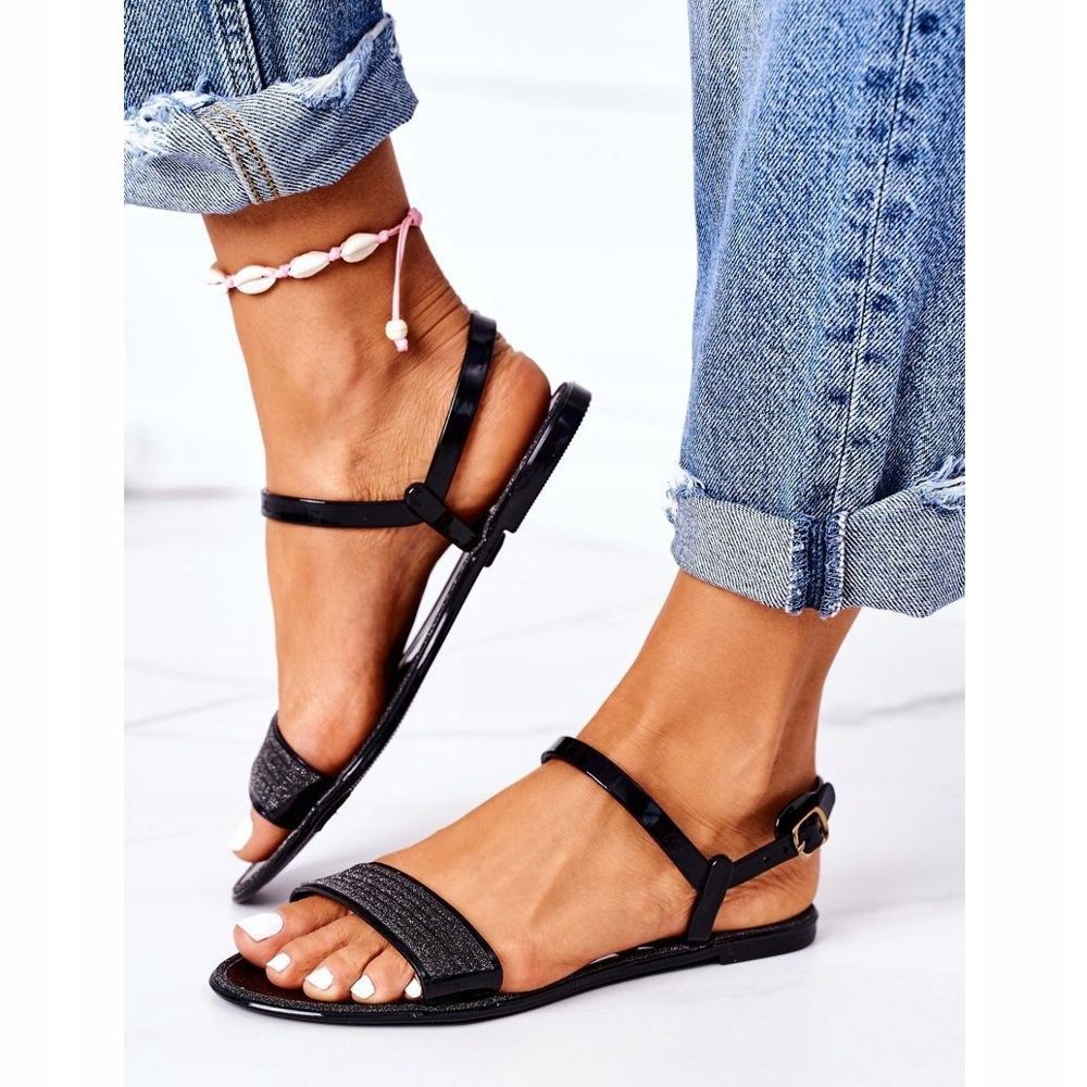 LU BOO LU BOO Rubber Sandals With Black Beach Time Glitter