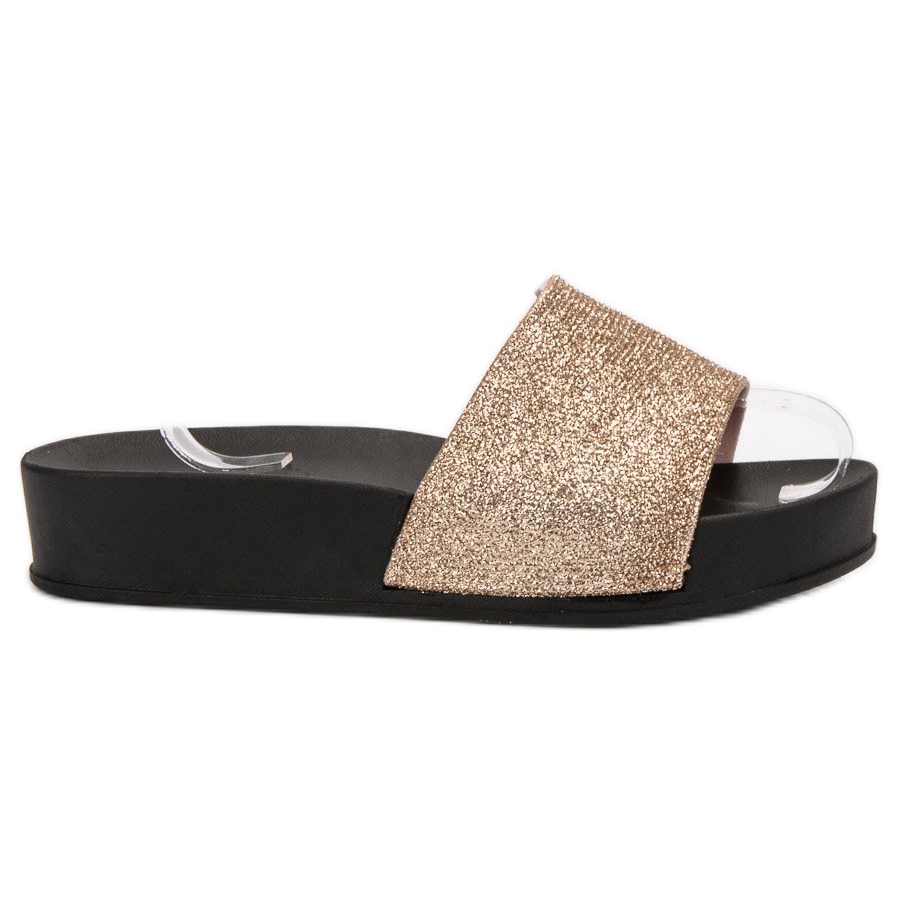 SHELOVET rubber platform flip-flops in a juicy yellow color are a great choice for summer days, which will definitely attract attention and add style to any casual styling. Their unique design is complemented by spectacular sequins on the front strap, which imitate the fish scale motif, introducing a unique accent to summer outfits.