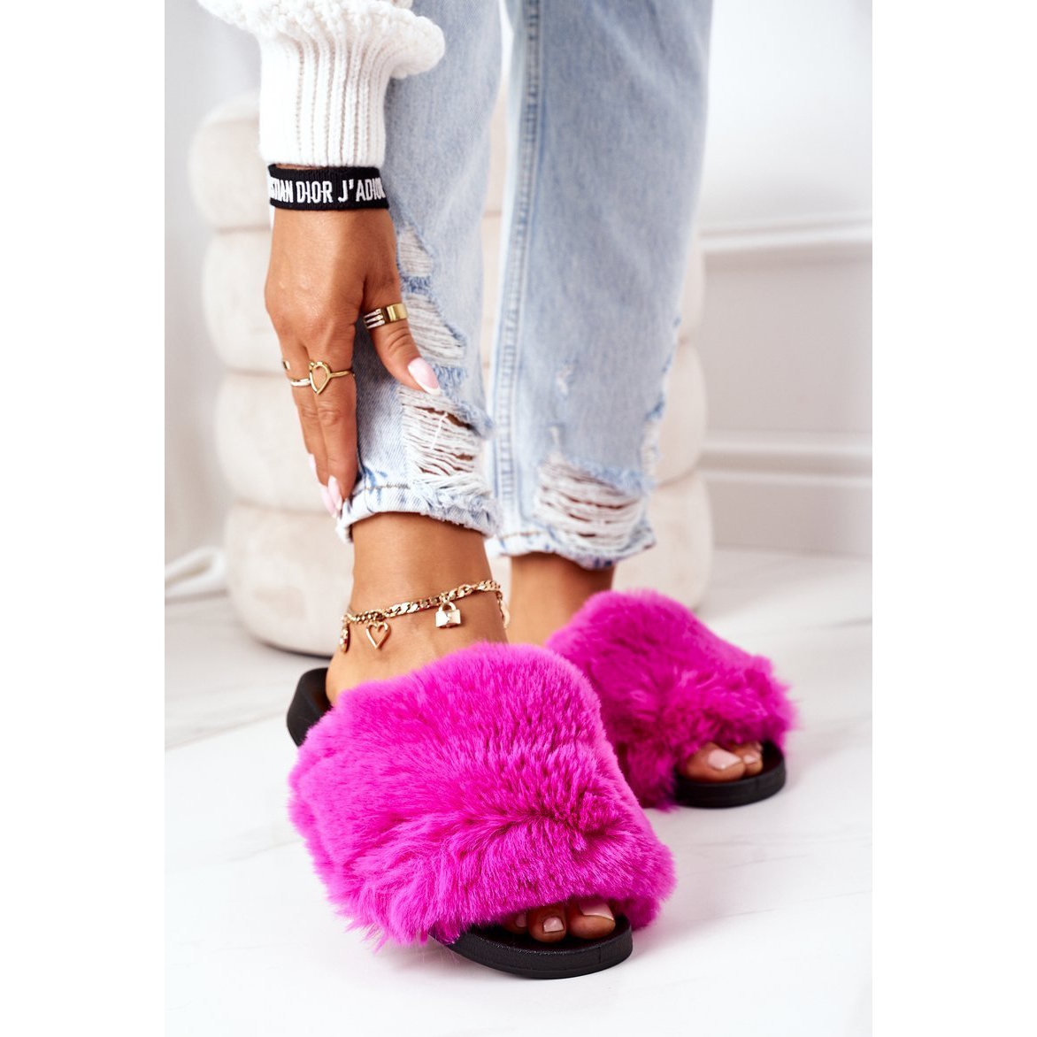 Details: FJ1 Rubber Slippers With Fuchsia Soft fur pink