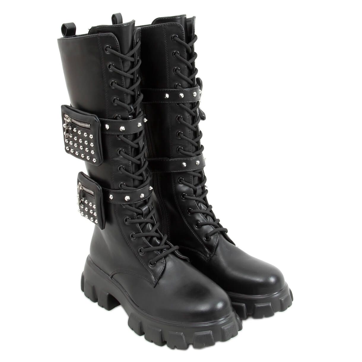Discover the extraordinary power of style with the black RXJ100 Black pouch boots! These unique women's boots are the perfect choice for brave women who value fashion challenges. Thanks to the massive sole and classic black color, they are an excellent base for many styles, and rock accents in the form of silver studs add a characteristic edge.