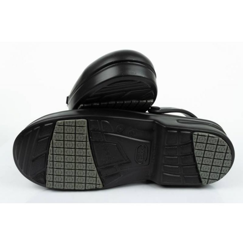The construction of the shoes is based on durable materials - the upper is made of plastic and EVA copolymer, which guarantees their lightness and comfort of wearing. The lining is without padding, which makes it easier to keep the shoes clean and ensures good ventilation. Additionally, the plastic stiffening protects the feet from injuries.