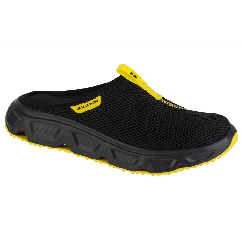 Salomon Reelax Slide 6.0 flip-flops are available in elegant black with yellow accents, which further emphasize their modern design. They can easily become an indispensable element of any summer styling or everyday wardrobe.