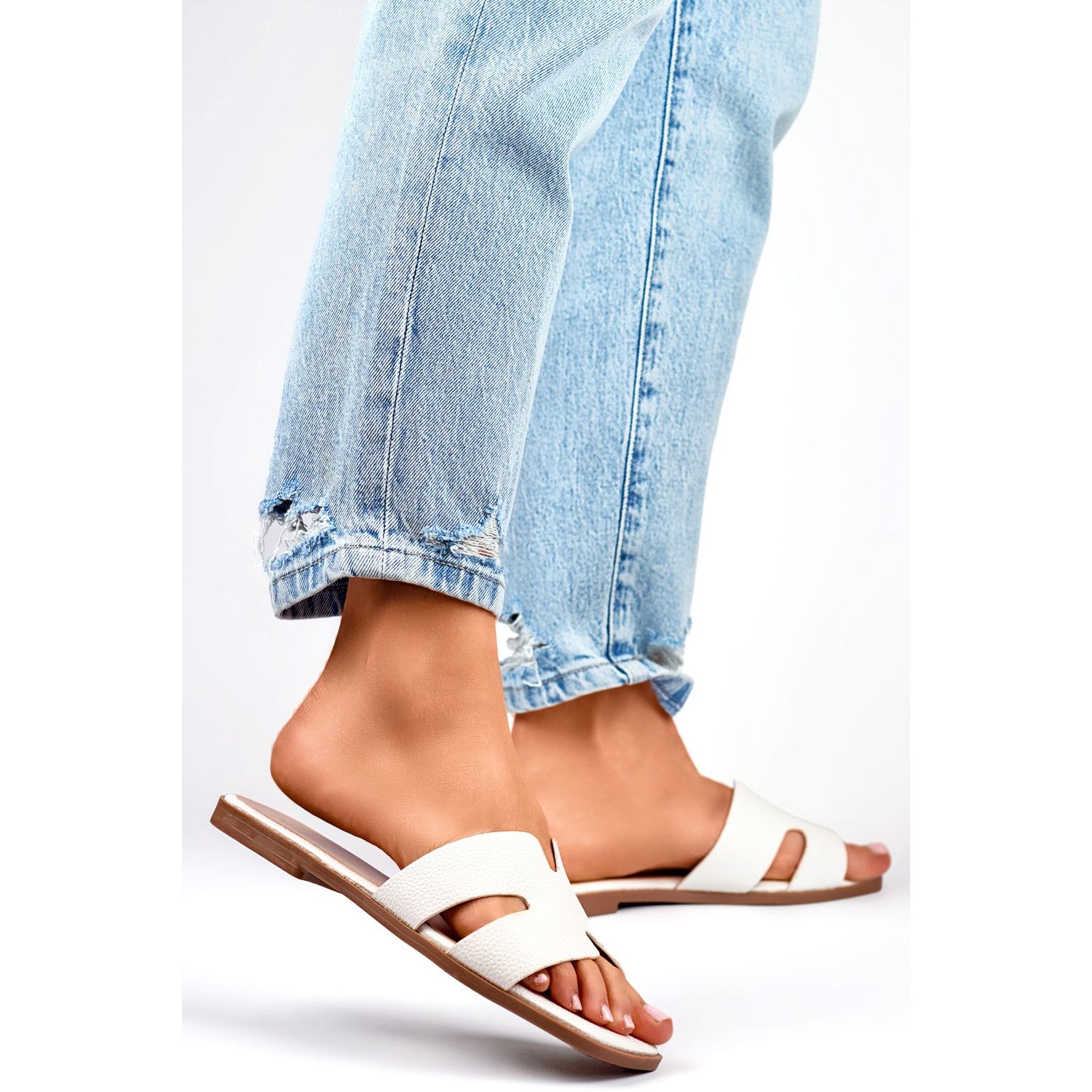 Open flip -flops add lightness, allowing your feet to circulate properly. Such design makes them extremely comfortable on hot days. The white color of the flip -flops is an excellent base for creating a variety of summer stylizations - you can easily adapt them to both free jeans and airy beach dresses.