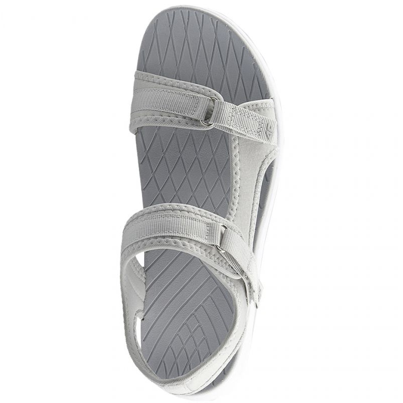 Discover comfort and style with the 4F W H4L20 SAD001 27S women's sandals in a cool light gray color. These unique sandals are designed for summer activities, thanks to the open construction that allows for proper air flow, guaranteeing comfort even on the hottest days.