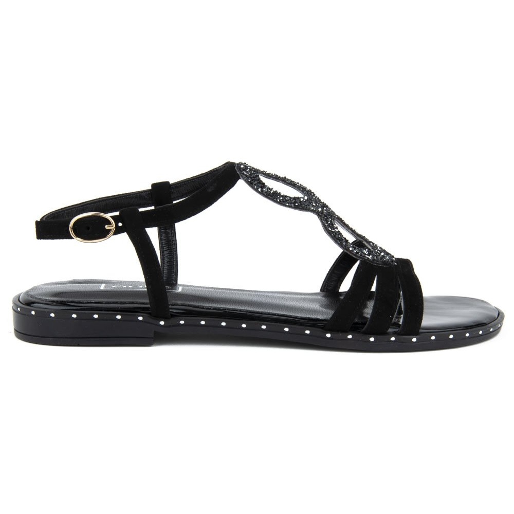 Discover the unique Filippo 1453N sandals that combine comfort with a fashionable design. Made of high-quality black suede and natural leather, these women's sandals are a great choice for everyday occasions. They are characterized by a classic cut and an almond-shaped toe, which makes them ideal for a variety of styles.