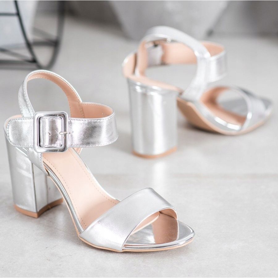Discover elegance and comfort with gray block heel sandals from Small Swan. Made of high-quality eco-leather, these unique shoes impress with a metallic shine that will add shine to any style.