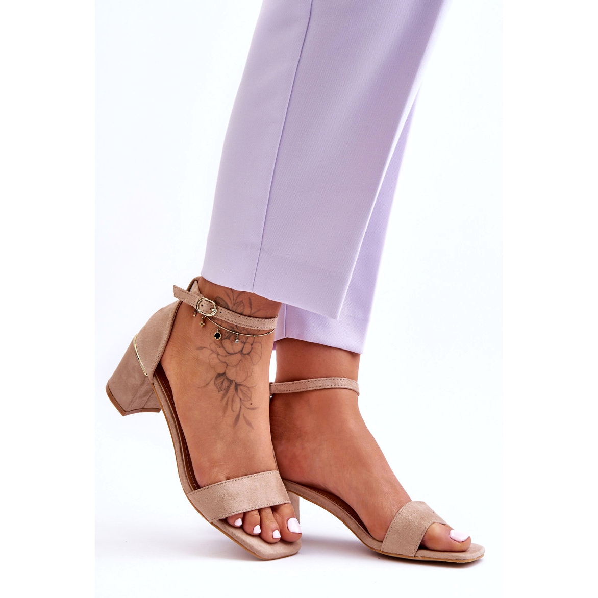 Elegant and comfortable - the perfect choice for summer celebrations. These women's sandals are made of eco suede in a universal shade of apricot. The discovered, square front and stable pillar with a height of 6 cm ensure comfort even during longer exits, and the subtle mirror element with high heels adds style.