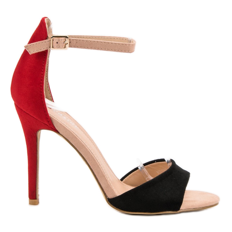 The Seastar high heel sandals in classic black are the perfect choice for women who want to emphasize their elegance and style. The combination of black material made of ecological suede leather with red accents creates an effective and fashionable design that attracts attention. The high 10.5 cm high heel beautifully exposes the legs, giving them slimness and femininity.