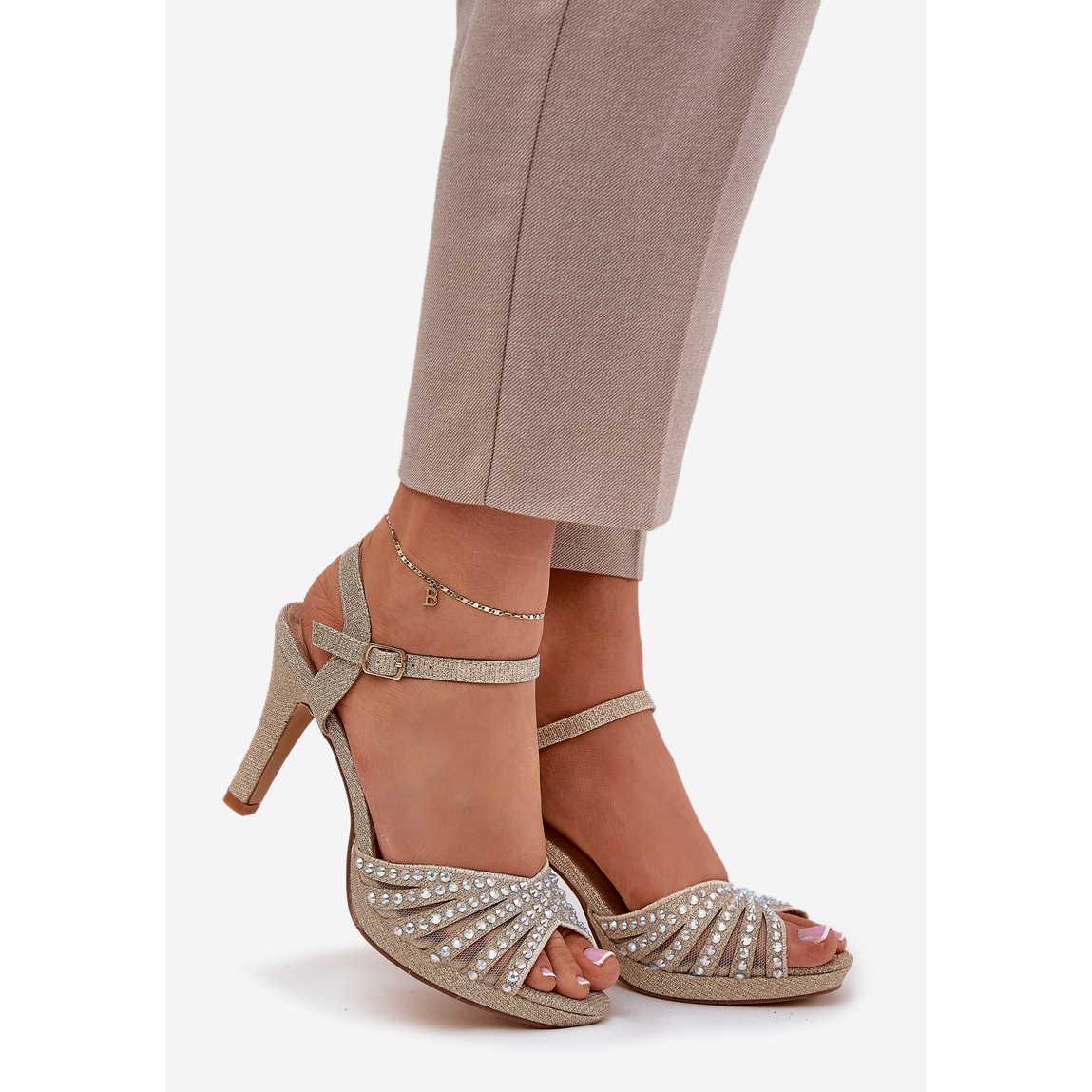 The offered sandals on the D&A MR1038-33 high heels are a great choice for women who want to add a bit of glow to their appearance. These elegant gold sandals with unique decorations and glitter are an ideal option for various special occasions - from evening to elegant meetings.