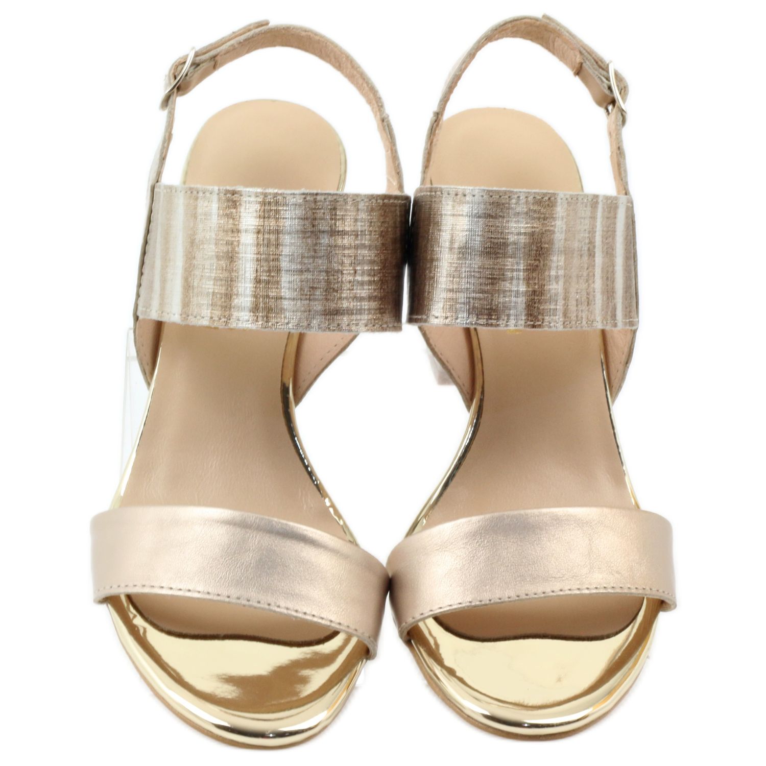 The Gamis 3390 gold block heel sandals are elegant and stylish footwear that will definitely attract attention. Made of high-quality genuine leather in shades of gold, these sandals are the perfect complement to any woman's summer wardrobe. Their classic, open-toe design and subtle finish make them a universal choice for various occasions - from everyday outings to more formal events.