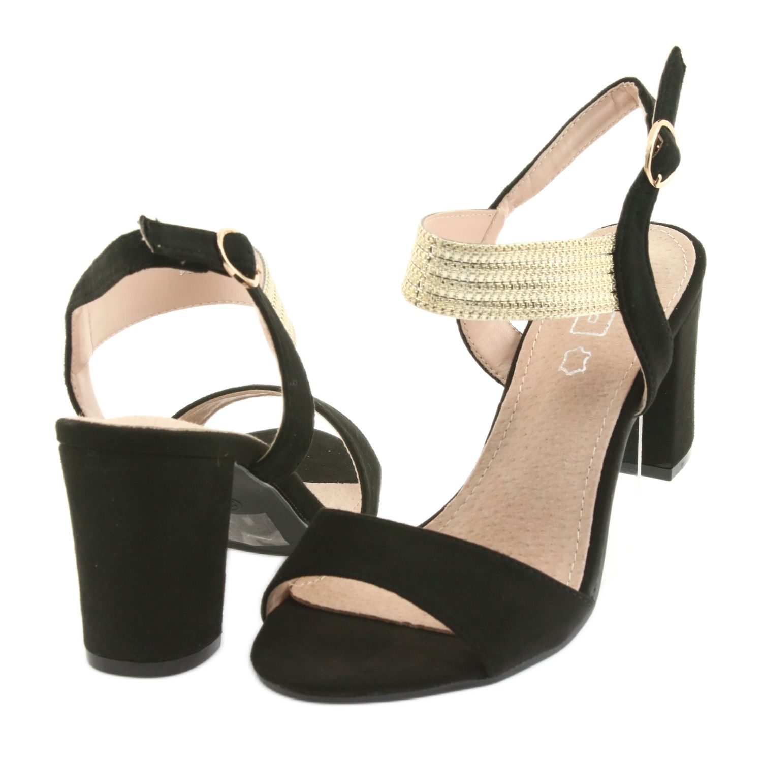 The upper made of high-quality ecological suede leather is characterized by an elegant finish, and the golden decorative strip that adorns the upper part of the upper adds a unique shine to them. The stable 7.5 cm high post makes the sandals comfortable and allows for free movement all day long.