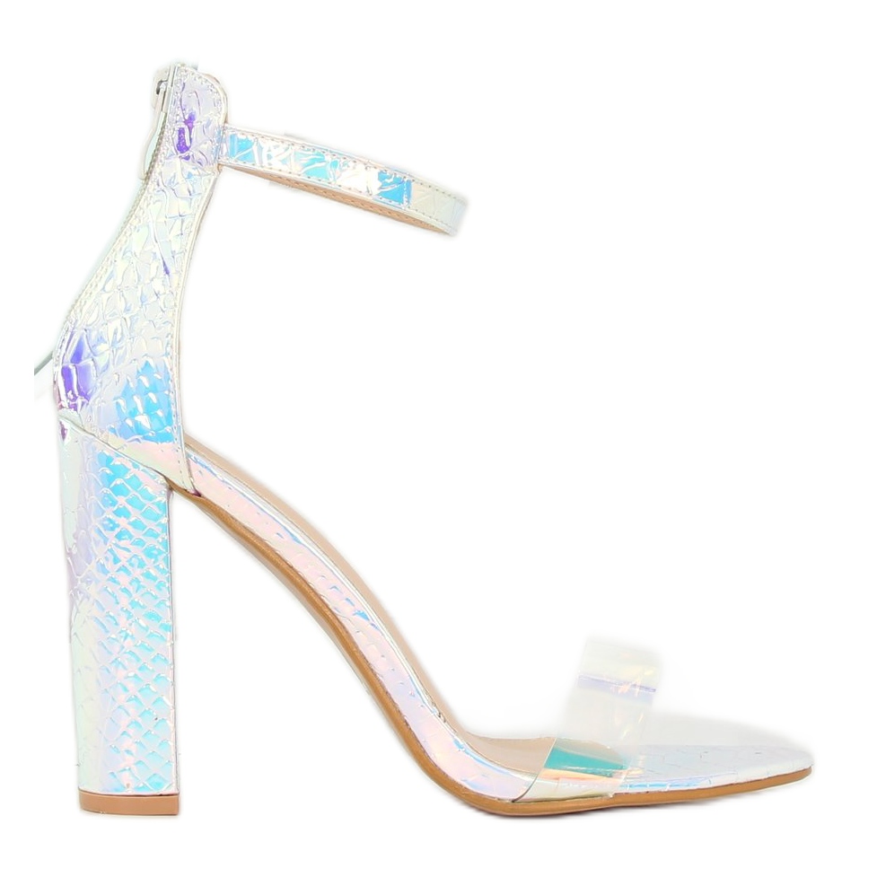 We present the stunning BD344 silver sandals, which will certainly attract attention thanks to their original, holographic finish. These elegant shoes with a 10.5 cm high heel are the perfect addition to any styling, adding a unique shine to it.