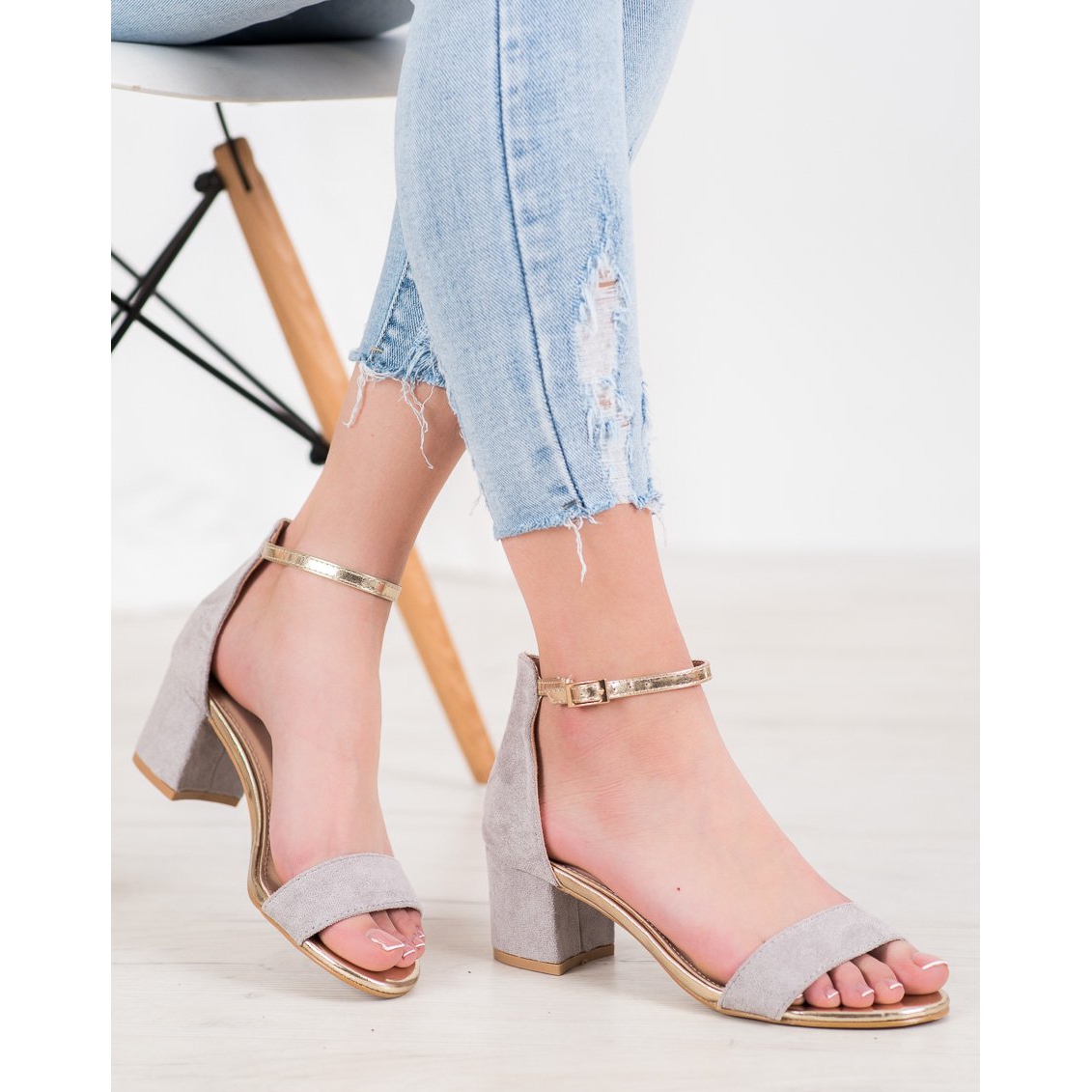 Seastar Sandals With Gold Strap in Grey are a great choice for women who value elegance and comfort. These classic women's sandals have been carefully crafted from ecological suede leather, making them not only aesthetically pleasing but also environmentally friendly.