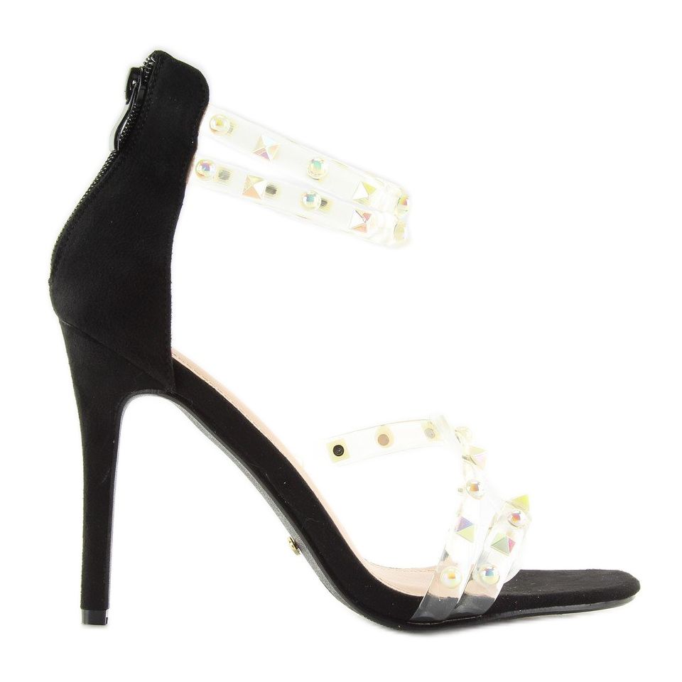 Made of ecological suede, the sandals impress with their softness and comfort of wearing. Transparent straps decorated with iridescent studs and beads give them a unique character, thanks to which every moment in these shoes becomes unforgettable. The lack of a toe makes the sandals not only stylish, but also perfectly breathable, making them an ideal choice for summer outings.
