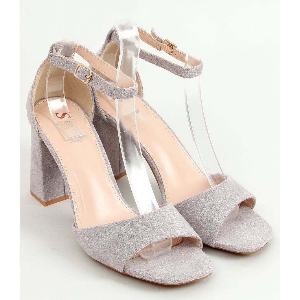 Details: Sandals with square heels, gray suede TU173P Gray grey