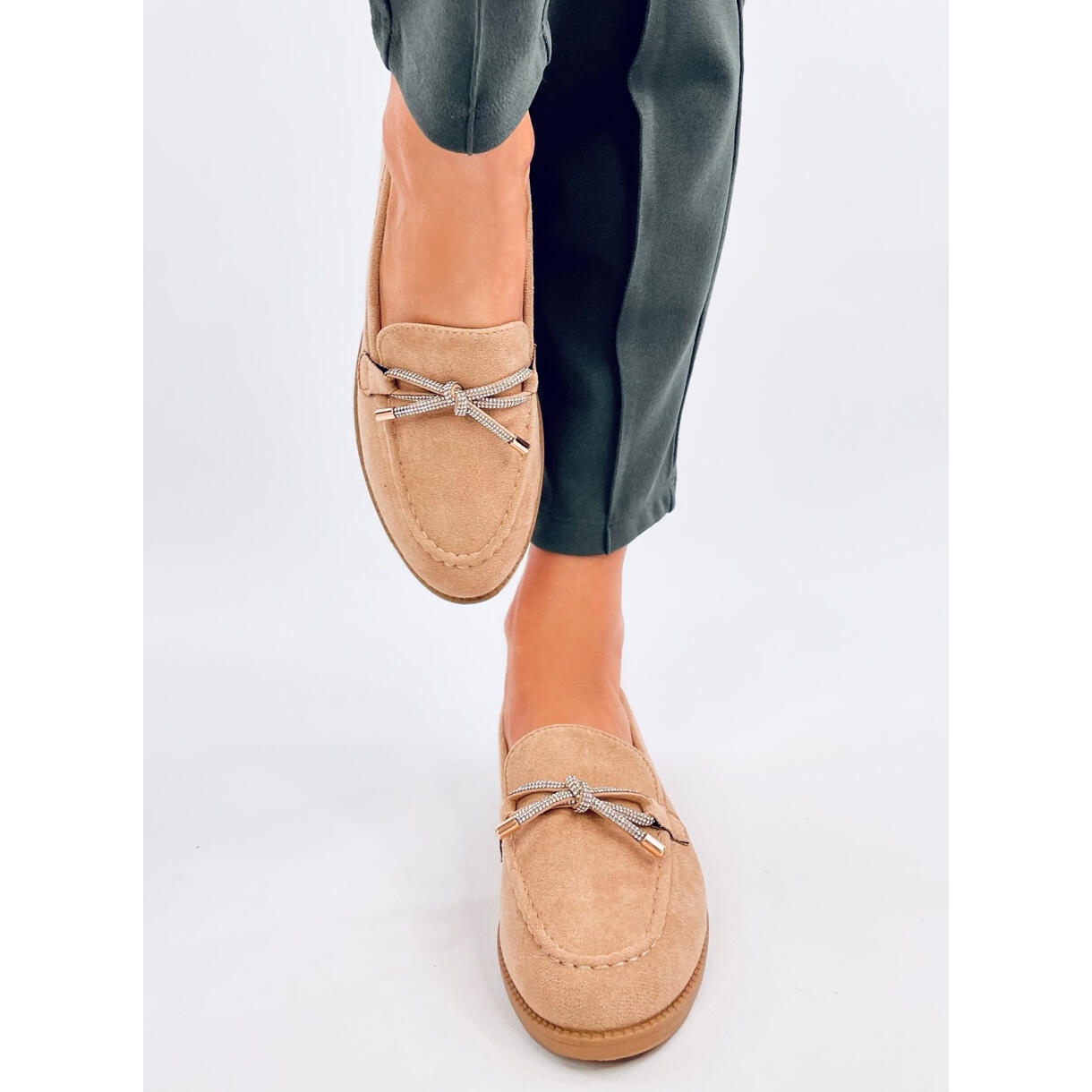Made of high quality ecological suede, loafers offer not only an aesthetic appearance, but also concern for the environment. A flat heel with a height of 2 cm provides comfort at every step, and the inserted cut makes it easier to put on and remove shoes. The interior of soft ecological leather guarantees comfort throughout the day, and delicate decorations in the form of zircon give them a unique charm.