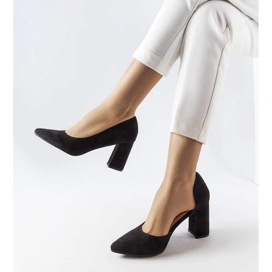 Black pumps on the Sargent post (model 2B1D5339-11)-elegance in suede edition. Classic, stuck pumps with a pointed nose, created for summer stylizations, where the style combines with stability.