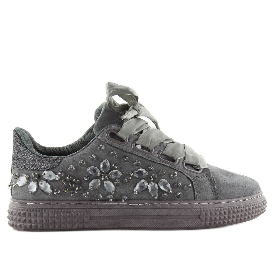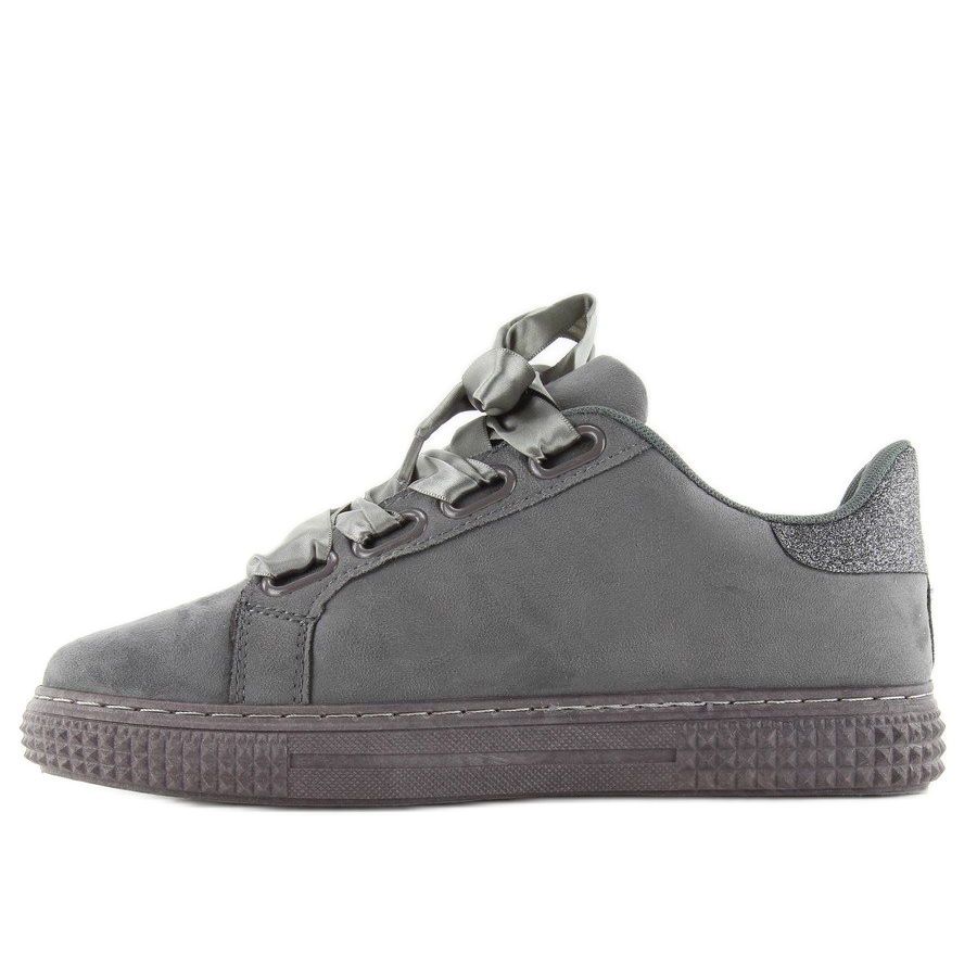 Inna marka Satin sneakers 16-535 Gray laces grey