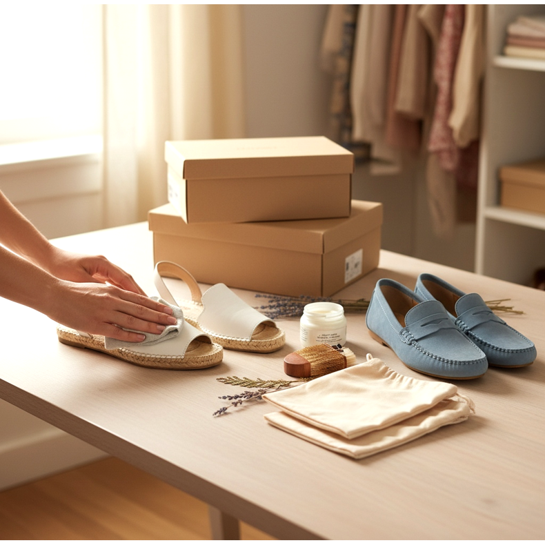 Before storing your summer shoes for the season, make sure they are clean and dry. Any trace of dirt or sweat can lead to permanent stains or odors. Wipe them with a clean cloth and let them dry completely. If your shoes are suede or leather, apply a protective lotion. Remember to store them in a cool, dry place - never in bright sunlight, which can discolor the shoes. If you can, store them in boxes or cloth bags to protect them from dust.