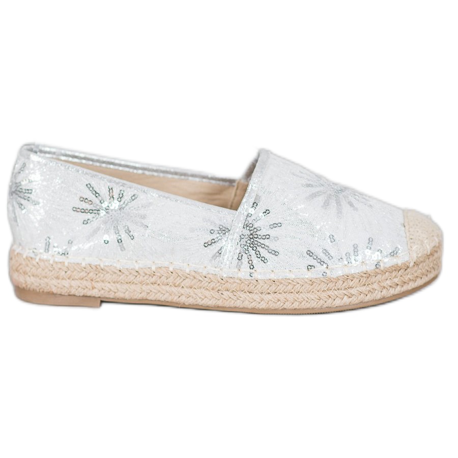 Women's Best Shoes espadrilles are the perfect choice for women who want to combine a fashionable look with comfort. Made of light gray fabric, these elegant shoes impress with an unusual detail - a delicate sequin pattern that gives them a unique charm.