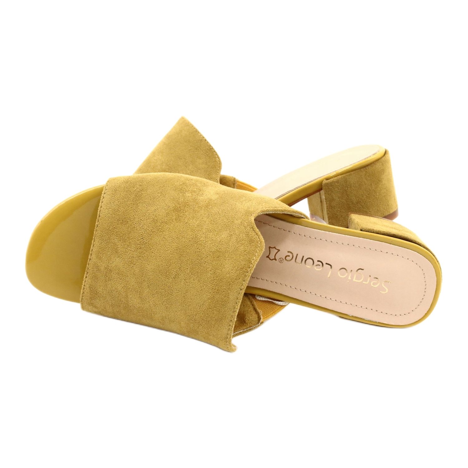 Discover elegance and comfort in the unique Sergio Leone KL313 high-heeled mules in the most fashionable shade of yellow. These original, suede mules were created for modern women who value both style and comfort. The 4.5 cm high heel provides stability, which allows you to wear them comfortably all day long.