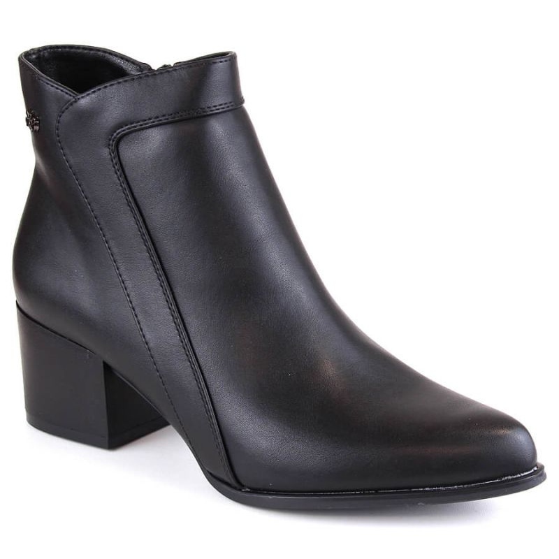 Classic, black Sergio Leone Model in SK420B is a combination of women's cut and practical warming. The upper made of high-quality ecological leather, delicate fur inside and a stable heel-5.5 cm high heel ensure comfort and style during cooler days. The zipper makes it easier to put on, and the slender, pointed nose adds elegance.