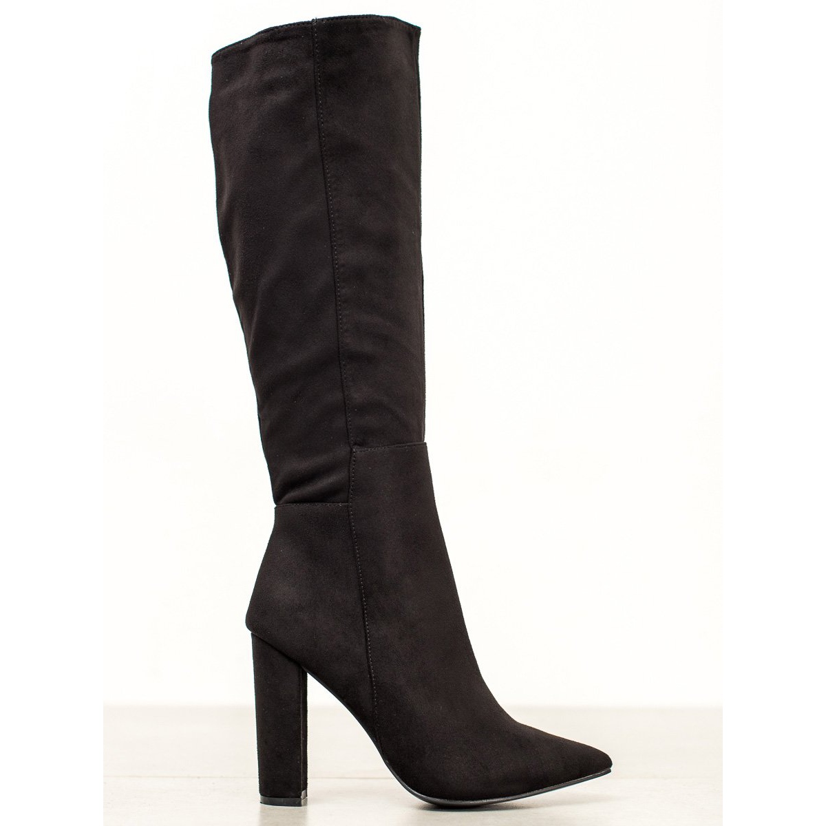Made of ecological suede leather, these shoes not only look incredibly stylish, but also offer comfort. The heel height of 10.5 cm makes the silhouette slimmer, and the built-in, soft heel counter provides stability and comfort. Thanks to the insulation, the boots will work great on colder days, and their synthetic sole guarantees durability and resistance to damage.