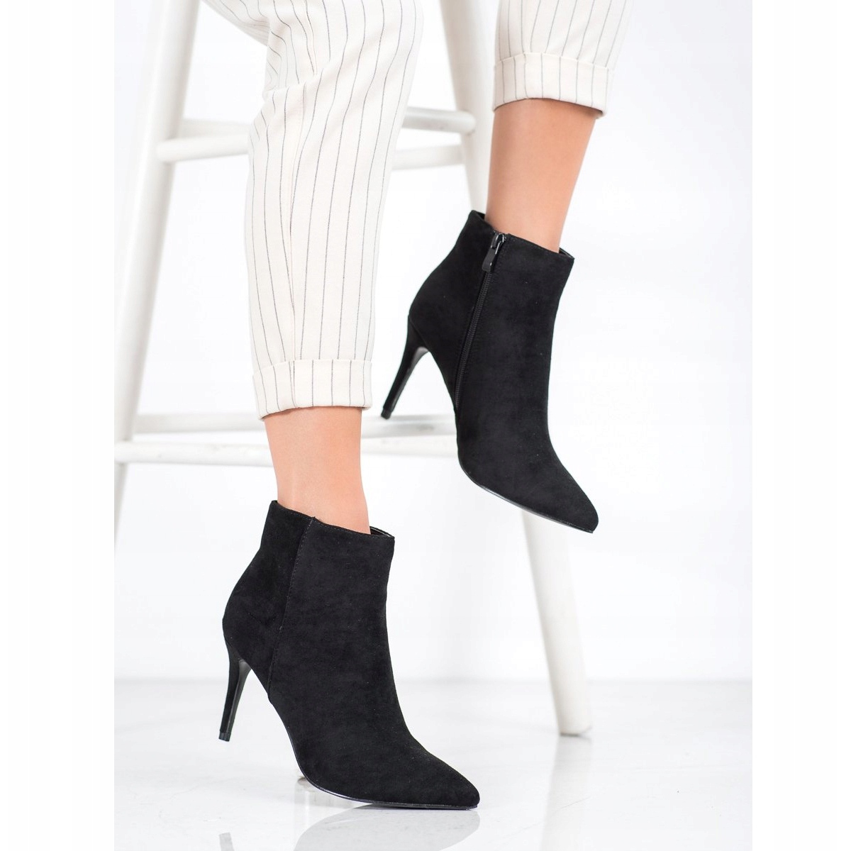 Discover elegance and sensuality with sexy suede ankle boots by Sweet Shoes! These unique women's shoes in black are the perfect choice for special occasions, evening outings or celebrations. Equipped with a thin stiletto heel with a height of about 8.5 cm, they perfectly emphasize the shape of the foot, adding feminine charm and chic.