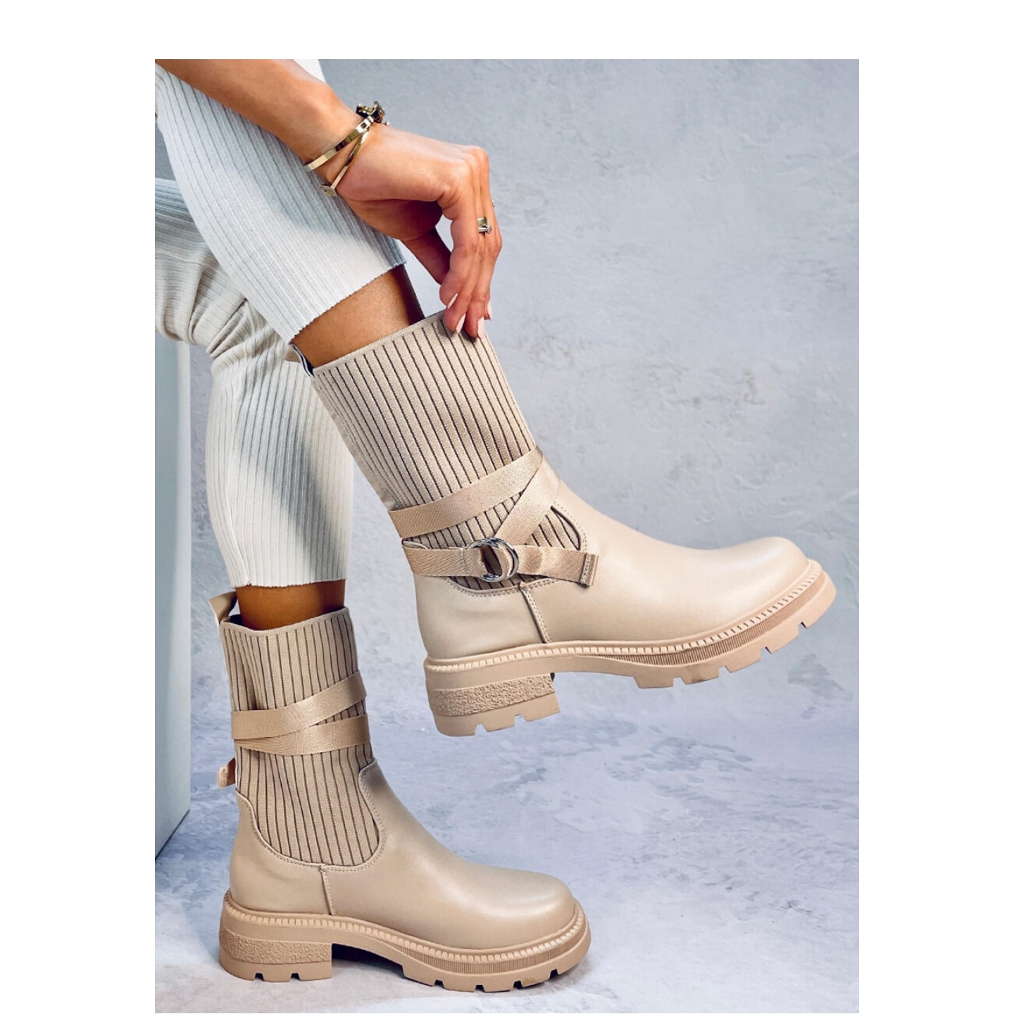 Discover a new dimension of comfort and style with boots with a flexible shaky upper khaki from inello. These women's shoes on a thick sole combine modern design with maximum wearing comfort. The upper made of flexible fabric, reminiscent of a sock, perfectly adapts to the shape of the leg, providing not only comfort, but also a fashionable look.