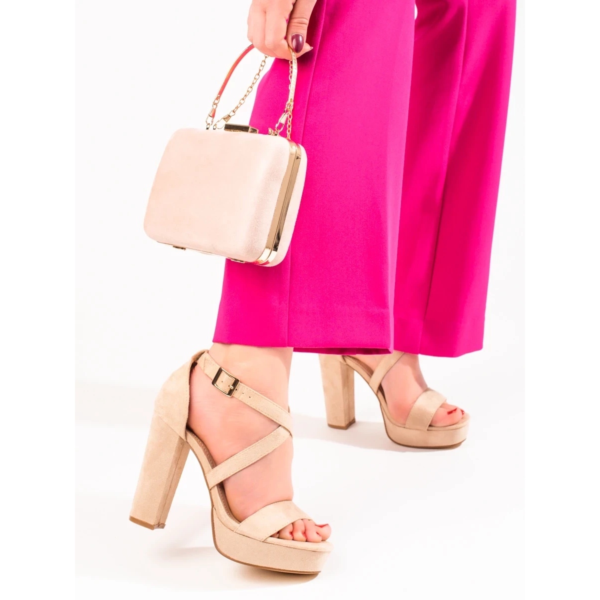 Elegant Shelovet sandals in a universal beige shade is a proposal for lovers of classics with a hint of fashion style. The high pin and the subtle platform slim the figure, and the stiffened, built -up heel ensures stability during dance and during longer wearing - perfect for the evening, party or celebration.