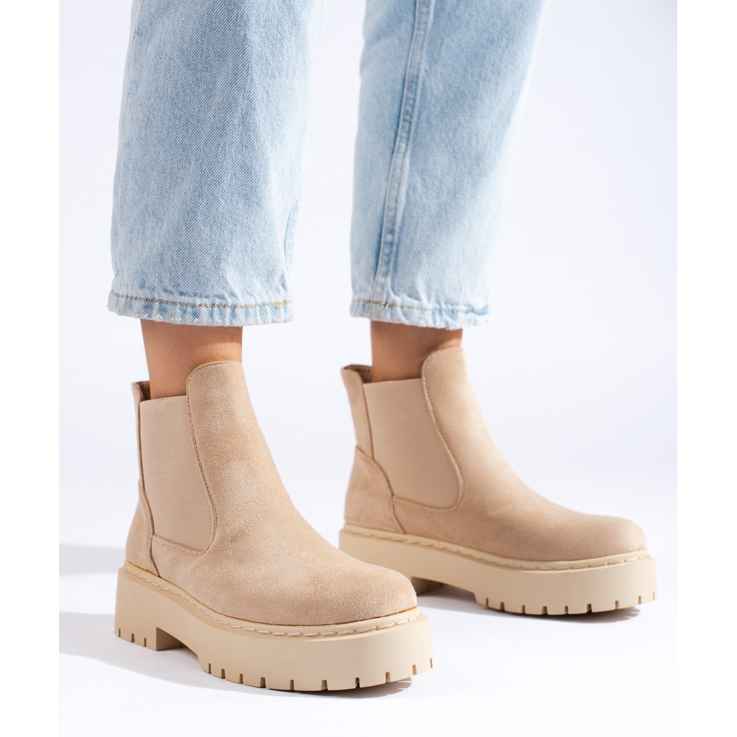 SHELOVET Shelovet beige suede women's Chelsea boots