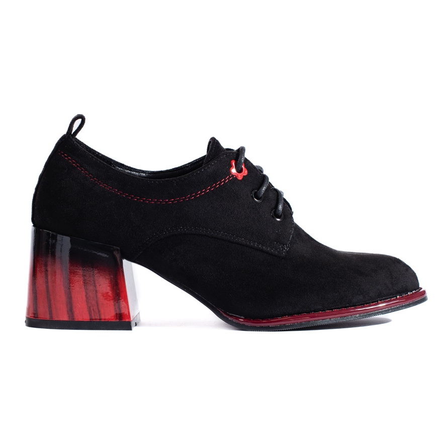 SHELOVET suede high-heeled shoes are a unique proposition for women who value elegance combined with comfort. The black color of the shoes makes them a universal addition to almost any outfit, and the lack of an external pattern further emphasizes their classic aesthetics. Thanks to the round toe, the shoes fit various foot shapes, and the solid lace-up closure ensures fit and comfort while wearing.
