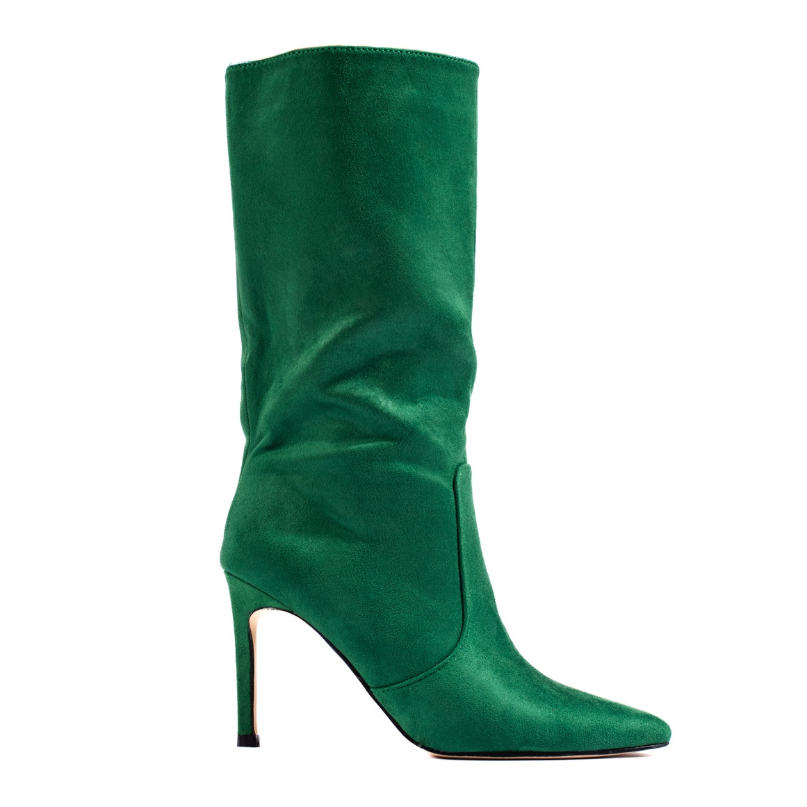 Green suede high-heeled boots by SHELOVET are a distinctive addition to the autumn-winter wardrobe of every woman who appreciates elegance combined with a bold color accent. Shoes designed for women who like to stand out from the crowd, without sacrificing classic style and comfort.