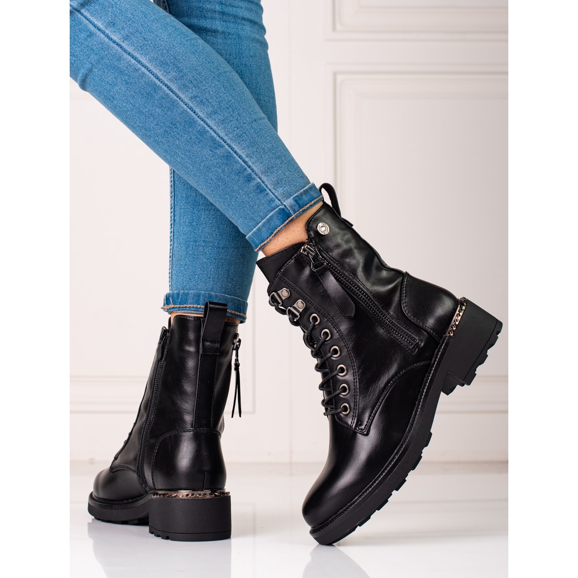 Discover the latest trend in footwear for the fall/winter season with the Shelovet women's lace-up boots in classic black. These stylish boots are made of high-quality ecological leather, making them not only a fashionable accent, but also an environmentally friendly choice. Thanks to the built-in, stiffened heel, your feet will feel comfortable and stable.